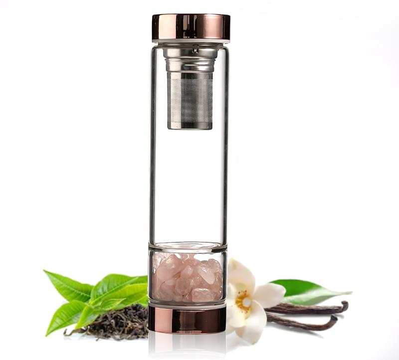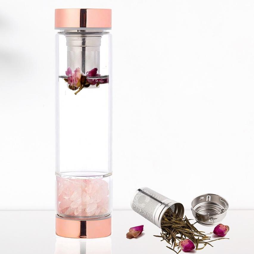 Vitalize Your Drinking Water On The Go And Enjoy The Benefits Of Pure Natural Crystals WITHOUT Complicated Rituals Or Routines With This Sustainable Crystal Elixir Water Bottle With Tea & Fruit Infuser !